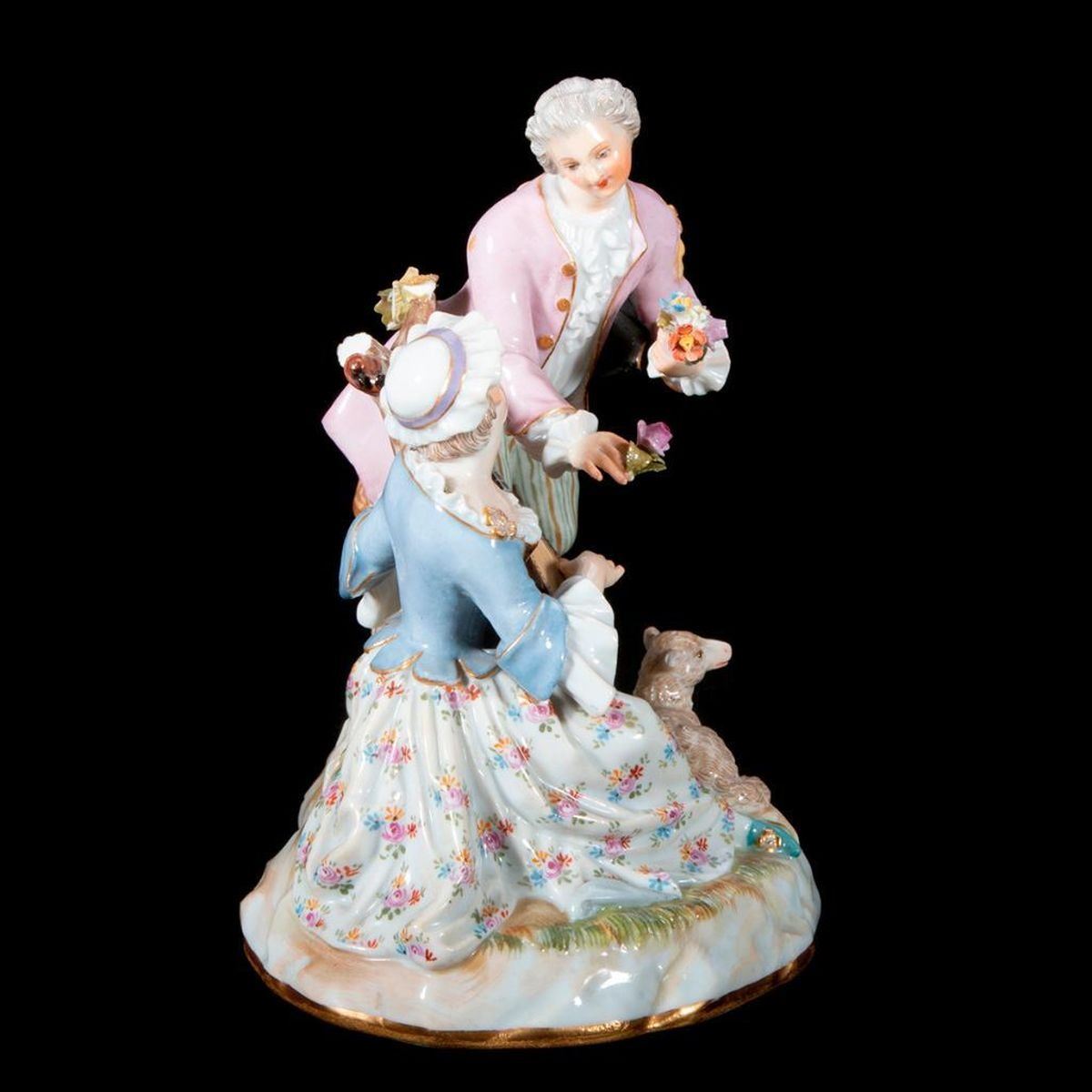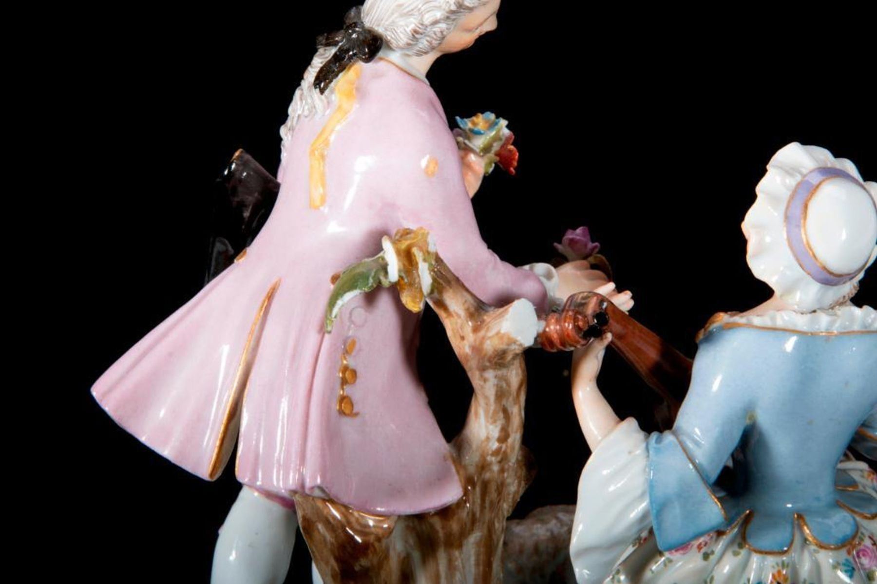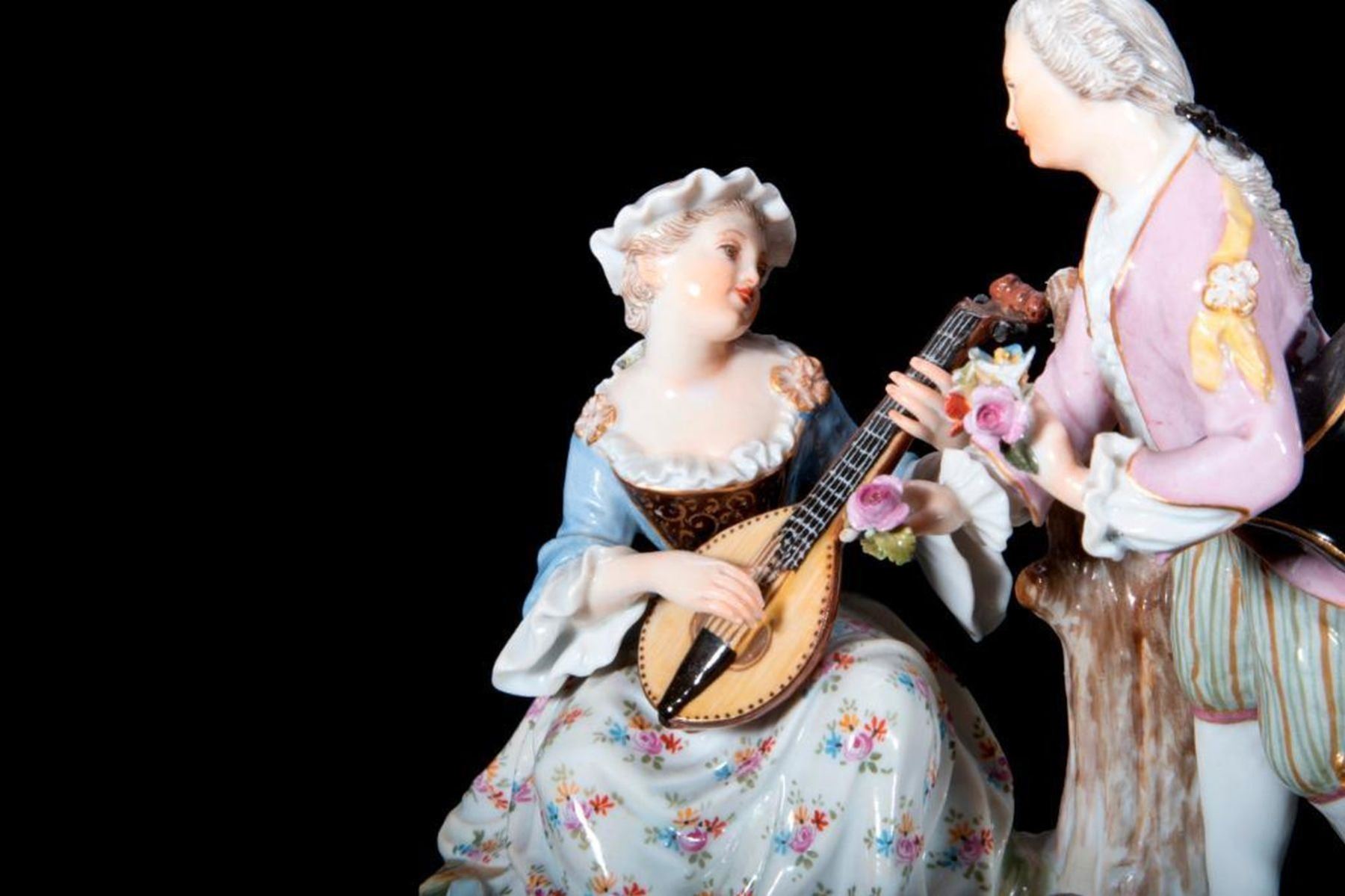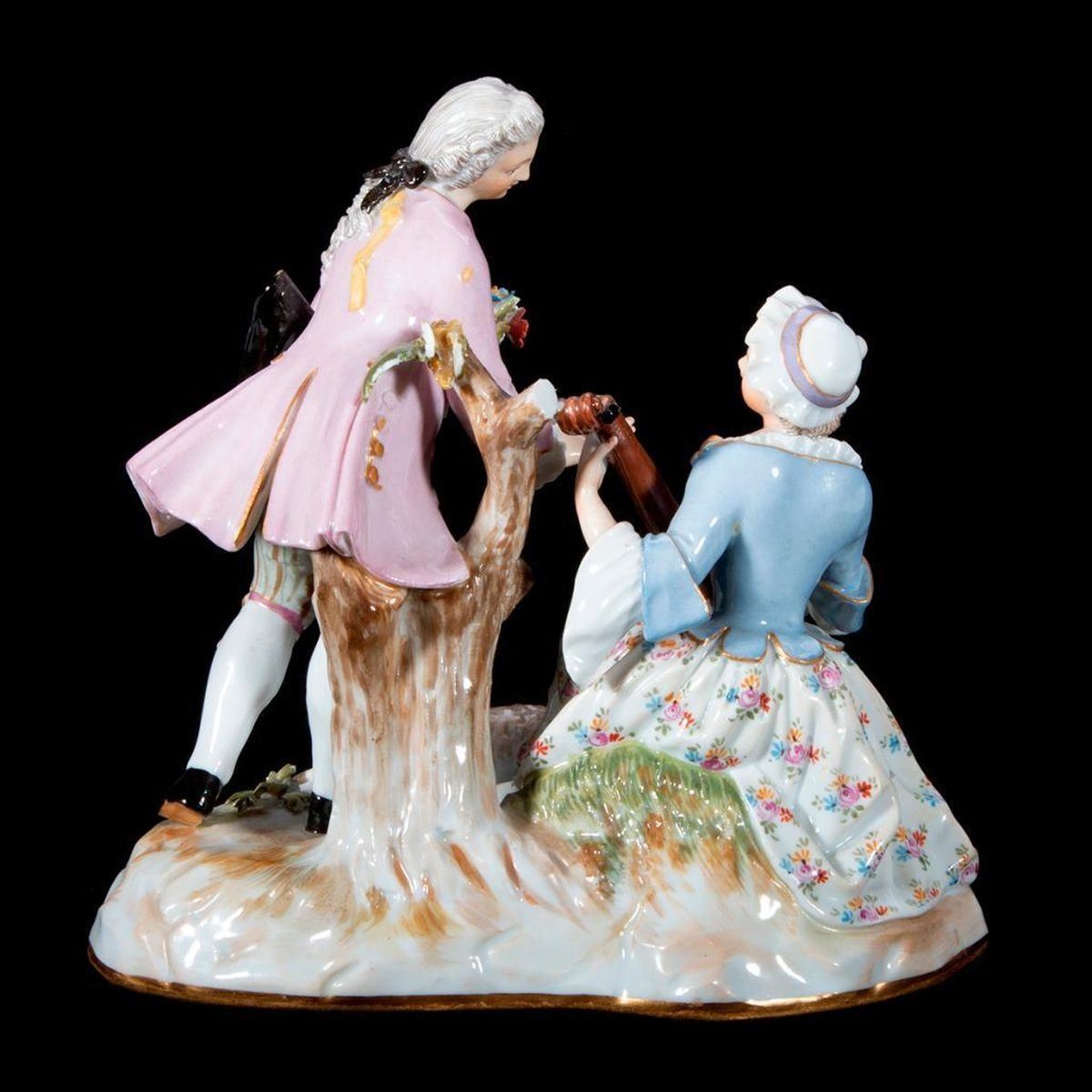 Meissen, Girl playing the Lute for her boyfriend. German H-4.6" W-5.5" D-3.5" Minor losses.