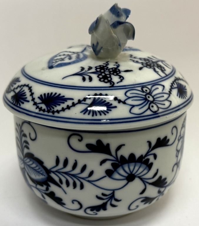 Meissen Germany Porcelain Blue Onion Lidded Jar