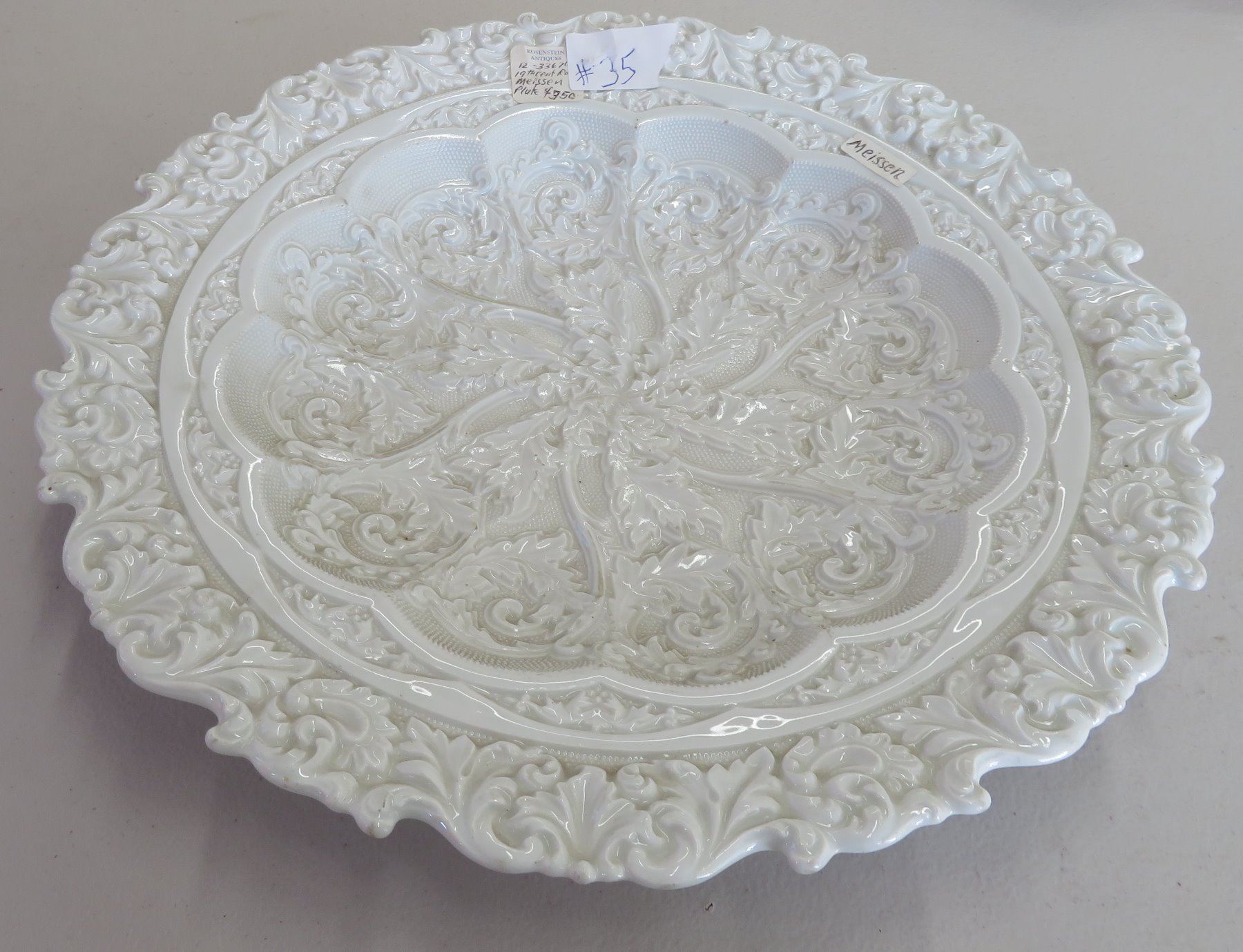Meissen Plate, 19th century item. Made of porcelain, the item measures 12" x 1 3/4". Germany. Condition: Good, see images. Shipping: $40.00 USA estimate only, w/insurance and signature, double-boxed, due to size and weight.