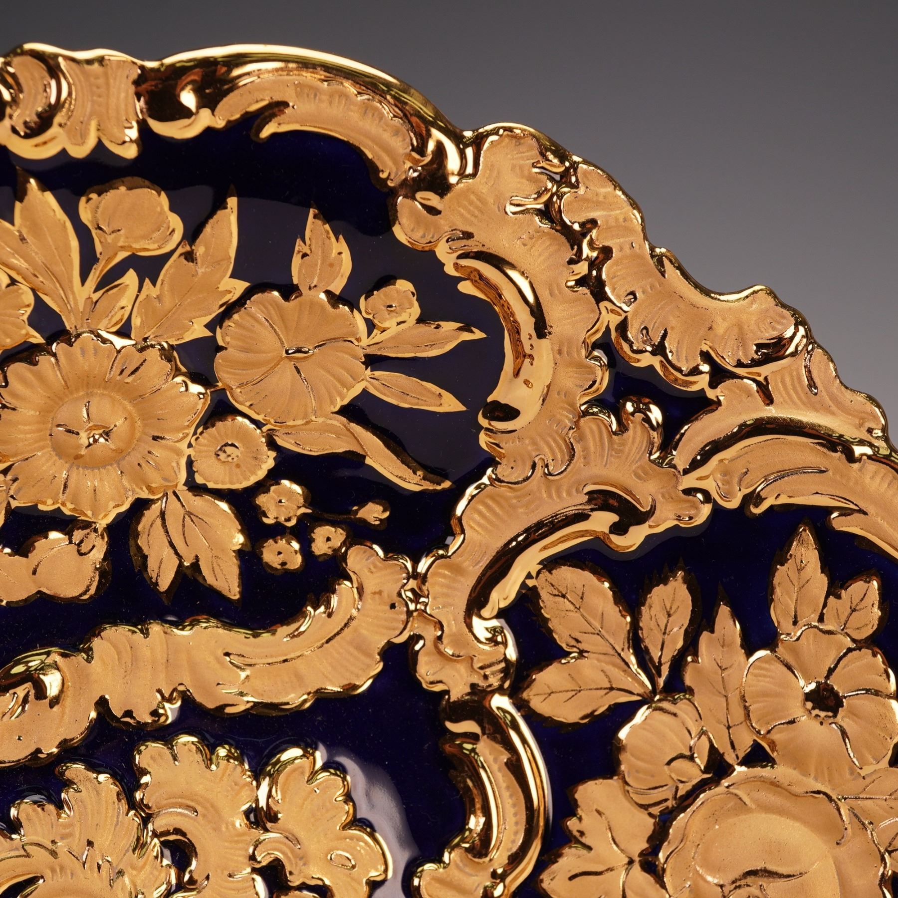 Meissen Porcelain Cobalt Blue and Raised Gilt Cabinet Bowl