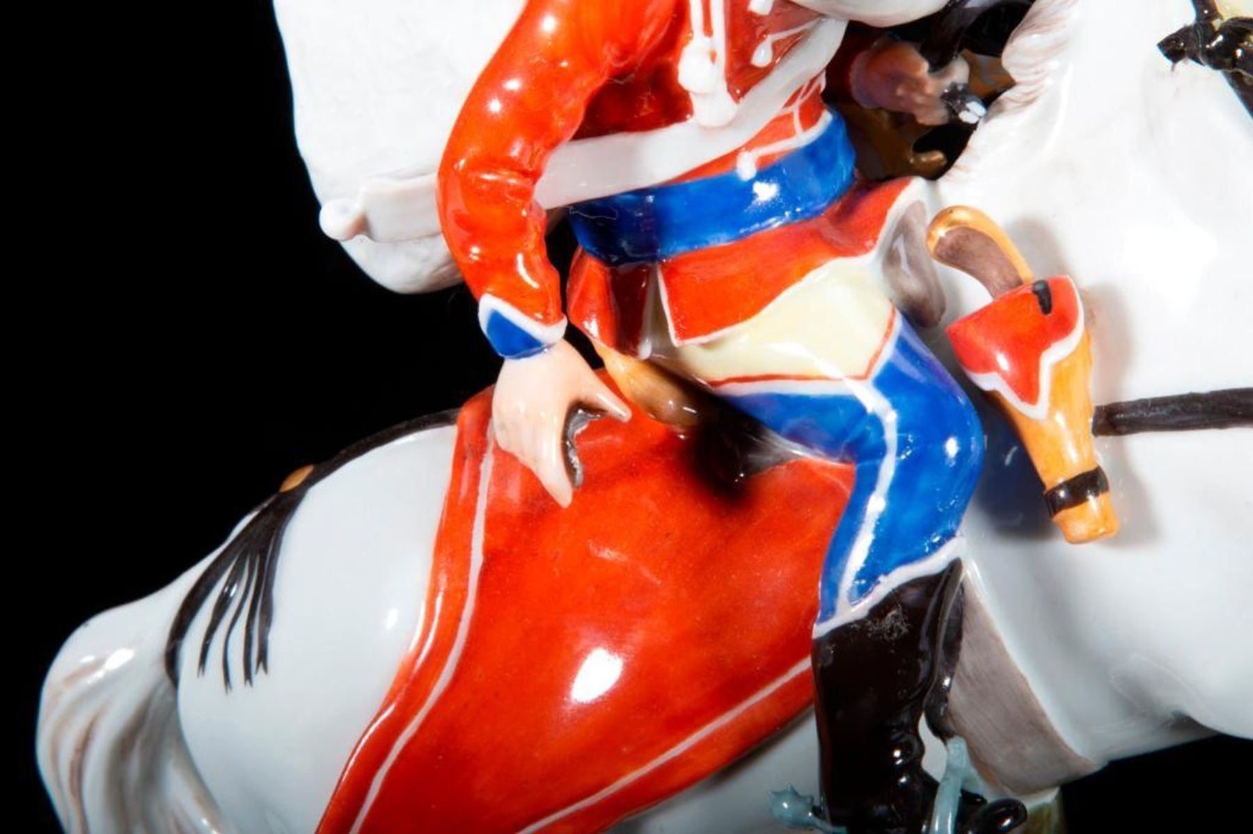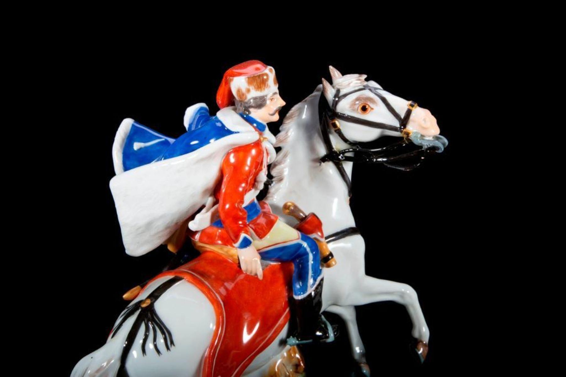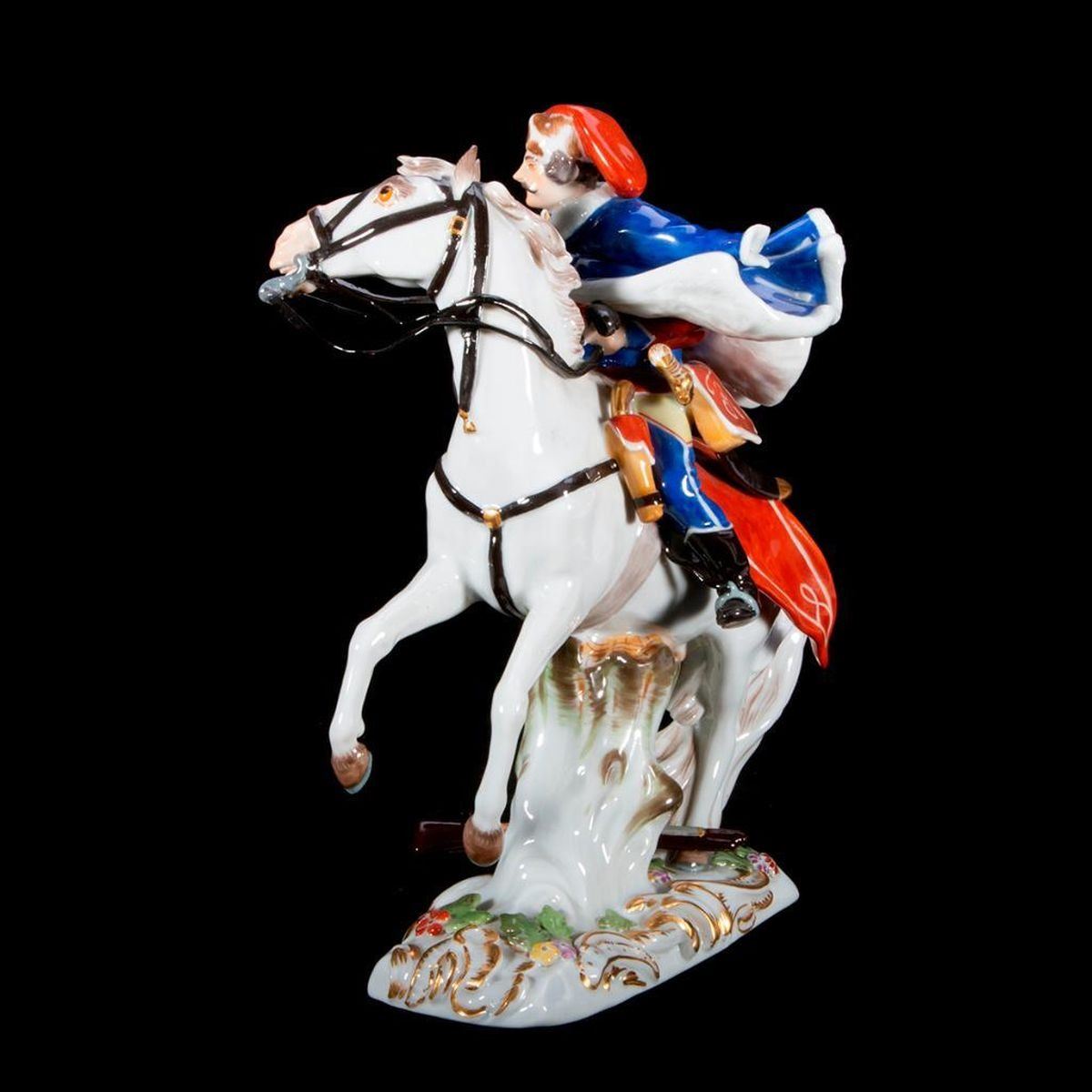 Meissen figure of a Russian Cossack. Dimensions: H-7", W-6.5", D-4.5". Condition: Near perfect, rifle has come loose from his hand.