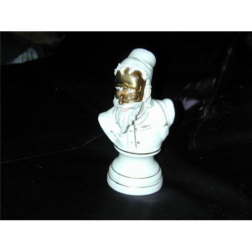 This is an incredible vintage bust of a bearded masked man. Mostly in white the ears and neck are painted in a skin tone, while the beard is all white,his hair is tinged with grey. The sublety of te figurine is manzing.