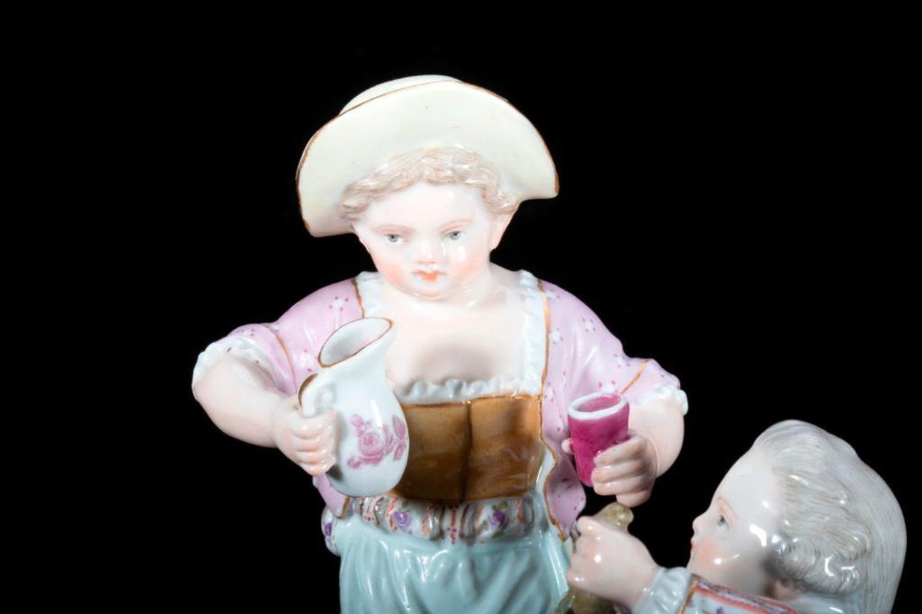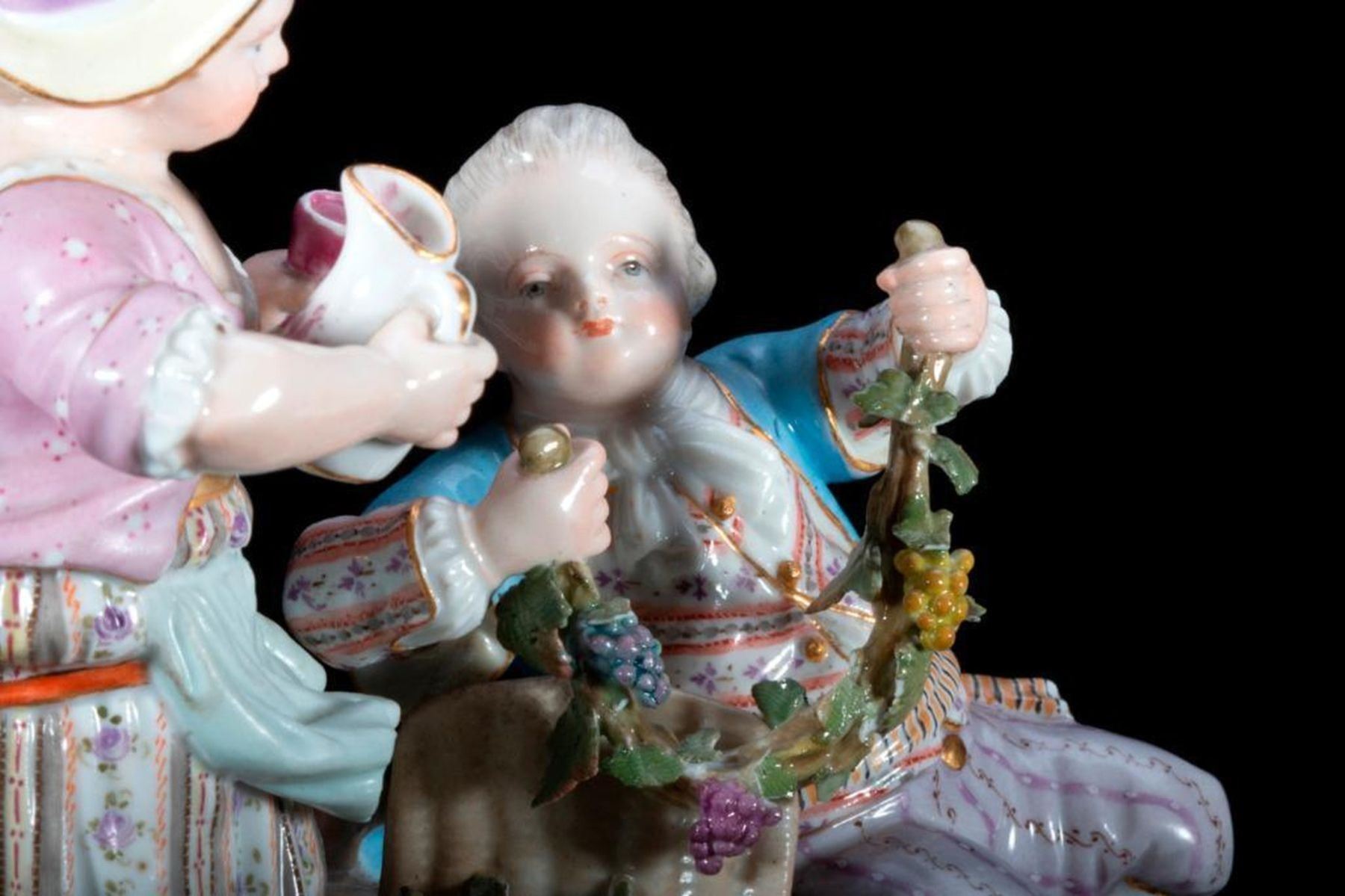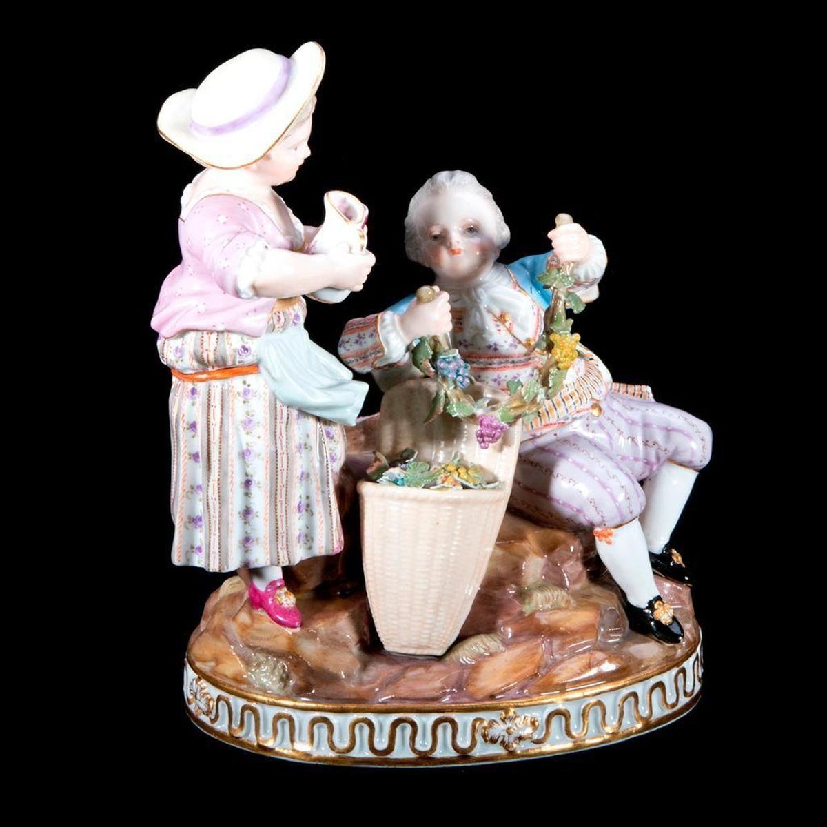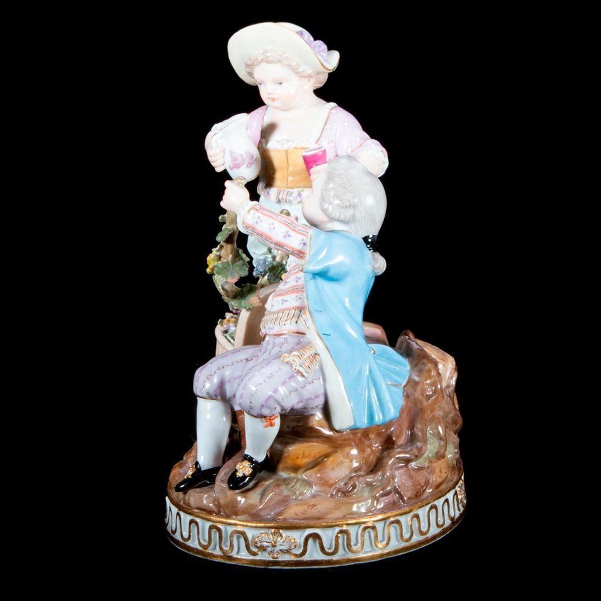 Meissen Group of a girl and boy with grapes and wine. Height-6.7" Condition: absolutely perfect
