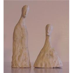 COUPLE (Beige), a pair of glazed ceramic sculptures, 5 1/4 & 4 1/2" tall, both signed. (2) STARTING BID $20. ESTIMATE $20 TO $1000