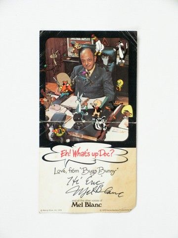 Special Warner Brother’s original signature card from Mel Blanc, signed by Mr. Blanc. (Note some discoloration on the lower right hand corner showing behind the “Blanc” in the signature). Approx. 7"x4"