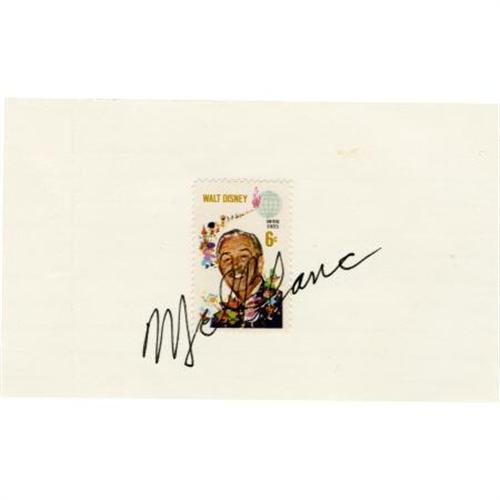 <B>Mel Blanc Signed Photo and Card.</B></I> A great color 8" x 10" photo of voice actor Mel Blanc at his desk with many of the cartoon characters he voiced drawn into the picture, inscribed "Eh - what's up Michael? Bugs Bunny and Gang 8-27-84" and signed by Blanc in black ink. The photograph is adhered to a loose album page. Also included is a 5" x 3" card, with a commemorative Disney postage stamp affixed, autographed by Blanc in black ink. Both items are in Excellent condition. <BR><BR><b>Shipping:</b> Flat Material, Small (<a target="_blank" href="http://www.heritageauctions.com/common/shipping.php">view shipping information</a>)