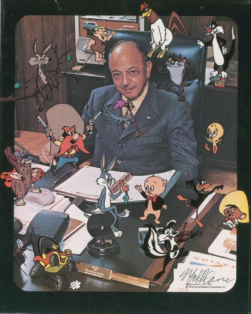 Color 8 x 10 cardstock photo of Blanc surrounded by his animated pals, signed in black felt tip. In fine condition, with a few mild bends and creases.