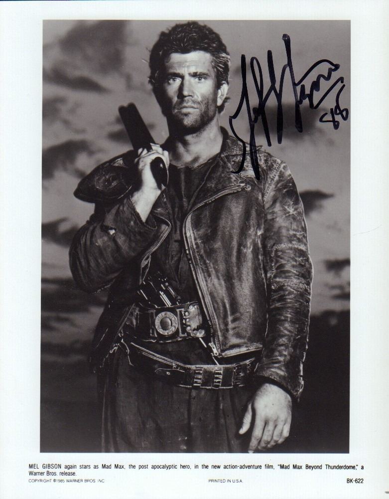 A 8x10 photo signed by Mel Gibson as Mad Max with COA.