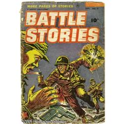 <B>Mel Keefer (attributed) - Battle Stories #11 Cover Original Art (Fawcett, 1953).</B></I> The ravages of war are brought right up in your face in this dramatic cover from the very last issue of <B>Battle Stories</B></I>, as a G.I. gets up-close and personal with the enemy. Outstanding line work, with great textures and bold use of blacks. The artwork measures 14.5" x 20", with an image area of 10.75" x 15.5", and is in Very Good condition; the logo header is a recent replacement.