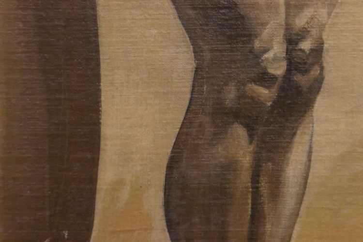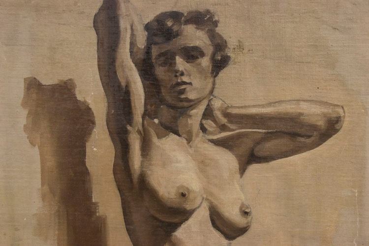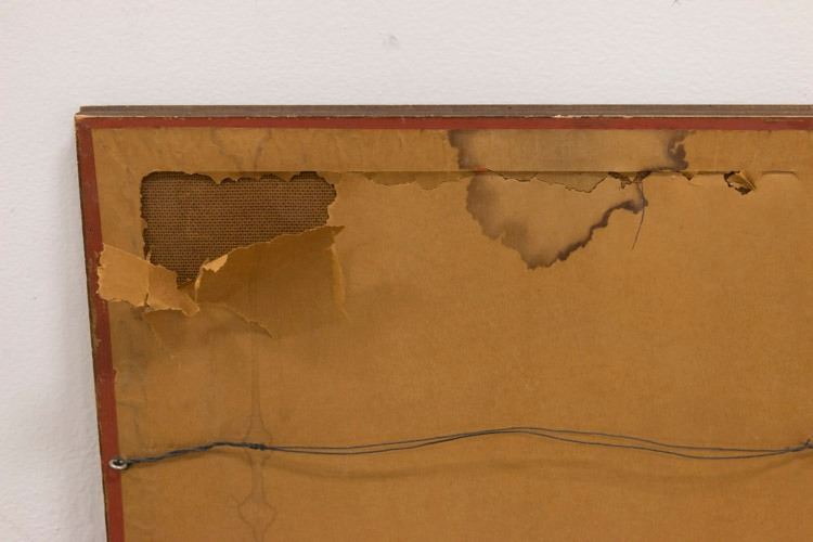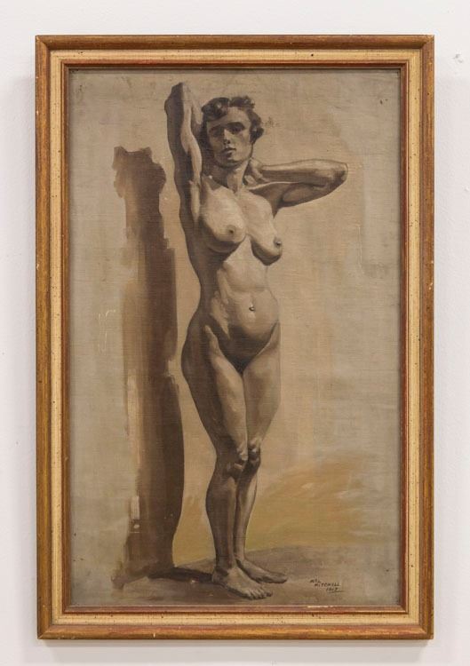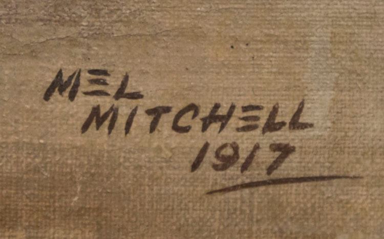 Oil on canvas board. Signed and dated 1917 lower left. Approx. 25" H x 15" W unframed, 28" H x 18" W framed.