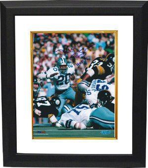Mel Renfro was drafted by the Cowboys in the second round of the 1964 NFL Draft. He was initially placed as a safety, but was switched to cornerback in his fifth season. The speedy Renfro (4.65 40-yd dash) became an exceptional threat to wide receivers. Mel led the NFL with 10 interceptions in 1969. Renfro was selected to the Pro Bowl in each of his first ten seasons in the League, including five All-Pro selections in 1964, 1965, 1969, 1971, and 1973. Mel Renfro has hand autographed this Dallas Cowboys 8x10 Photo with HOF 96 inscription. Custom White Mat and Premium Black Framed as shown. Certificate of Authenticity from Athlon Sports.