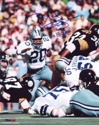 Mel Renfro was drafted by the Cowboys in the second round of the 1964 NFL Draft. He was initially placed as a safety, but was switched to cornerback in his fifth season. The speedy Renfro (4.65 40-yd dash) became an exceptional threat to wide receivers. Mel led the NFL with 10 interceptions in 1969. Renfro was selected to the Pro Bowl in each of his first ten seasons in the League, including five All-Pro selections in 1964, 1965, 1969, 1971, and 1973. Mel Renfro has hand autographed this Dallas Cowboys 8x10 Color Photo with HOF 96 inscription. Certificate of Authenticity from Athlon Sports.