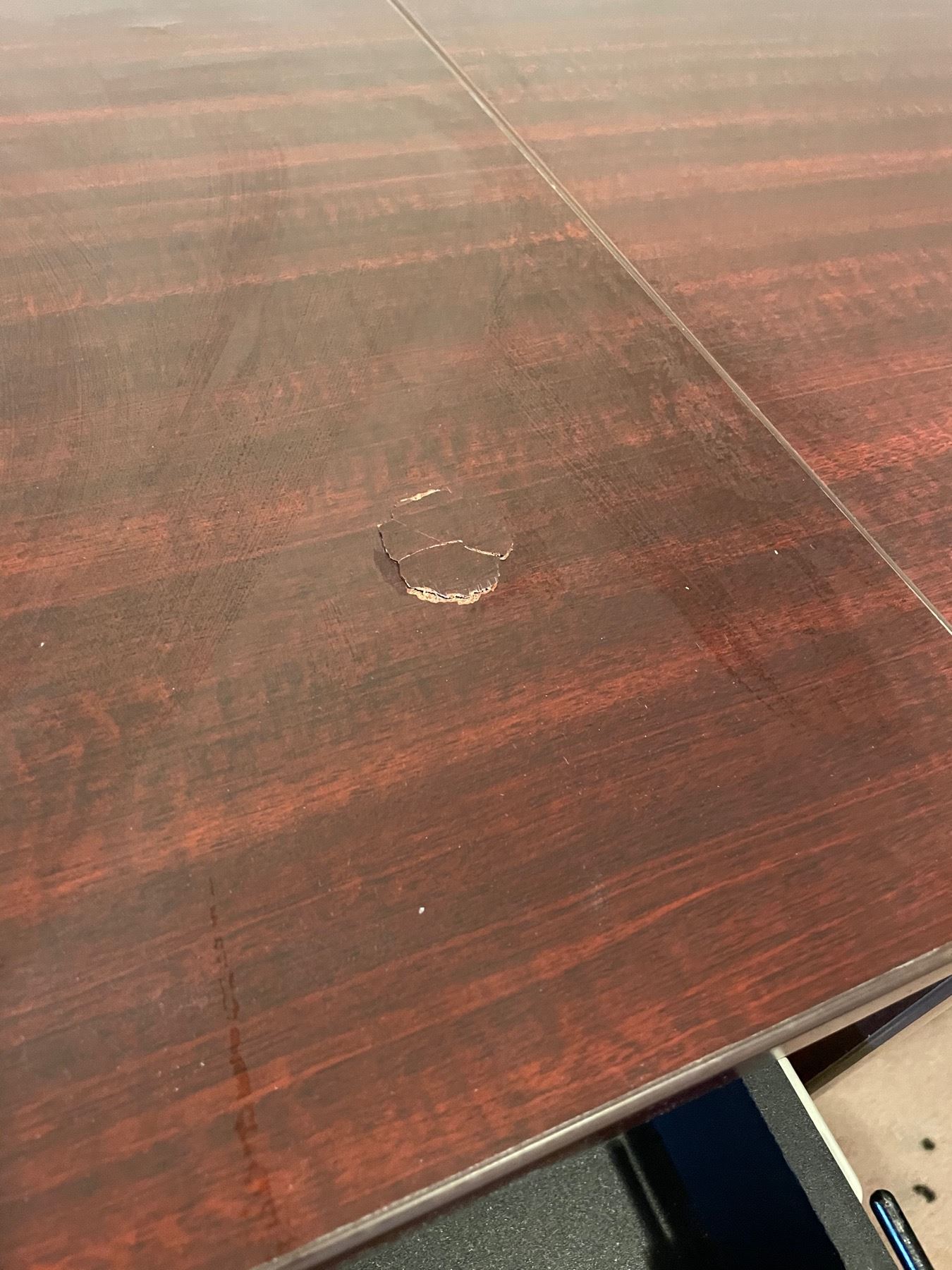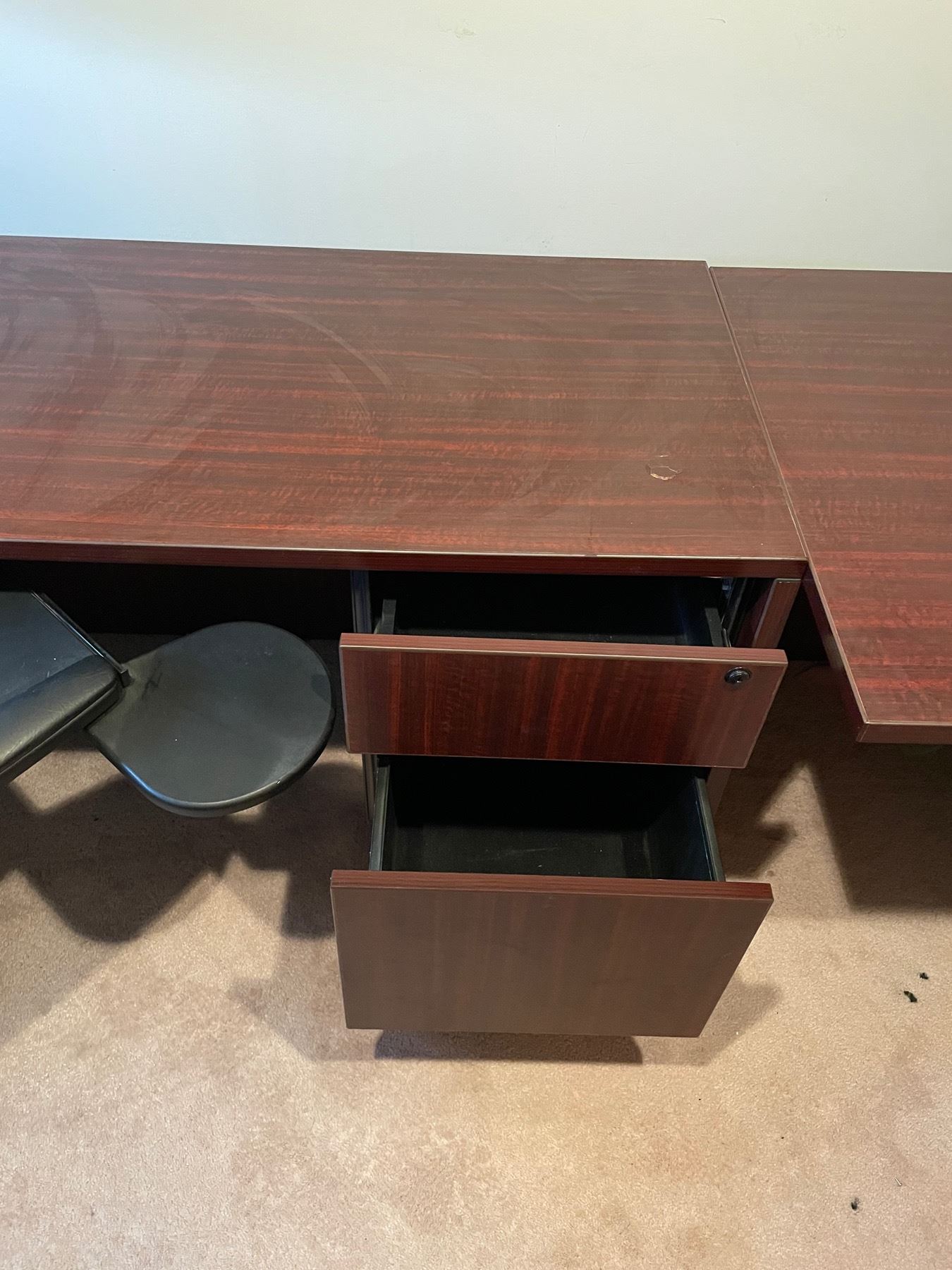 90" long 30" wide and 29" tall with two drawyers and minor damage on top.