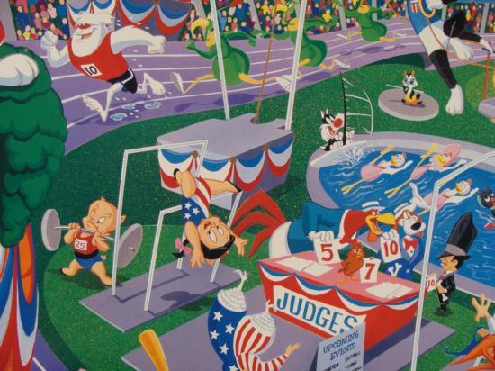 This colorful poster by famous artist Melanie Taylor Kent was created for the Olympic Games in Atlanta in 1996:Title: "Olympic Cen'TOON' ial" Poster on semi-gloss paper 24 × 36 Very good - excellent condition; has been stored rolled; never mounted, matted or framed Taylor Kent is a well-known, avidly collected and popular American artist with a very large and faithful following. This colorful poster - so representative of the artist's work and style - will make a great addition to any collection!