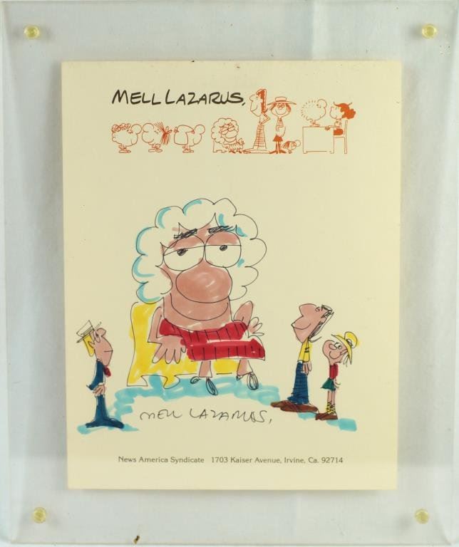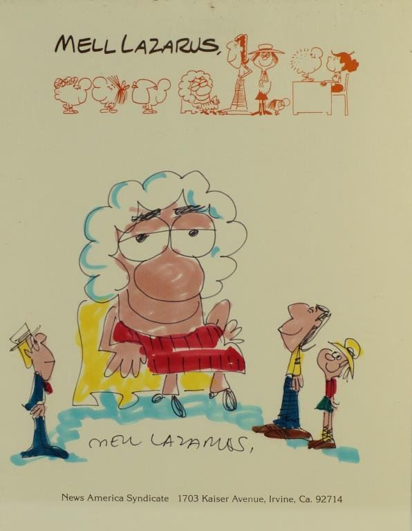 (Peanuts artist) Mell Lazarus (1927- ) Cartoonist. Lazarus is best known as the creator of two comic strips, Miss Peach and Momma, also worked as a teenager for Al Capp and Shmoo comics