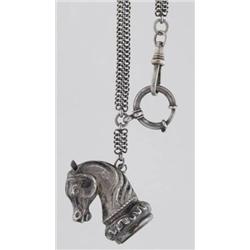 Bécs, 19. sz. utolsó harmada, ezüst, fantáziaszemes lánc, karabínerrel és ugrókarikával, lófejdíszes pecsétnyomójában heliotróp drágako, br. 20g