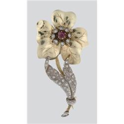 Bécs, 20. sz. elso harmada, 14 k arany, virágos formán 42 db briliáns cca 0,50 ct, FMATCrSi, 1 db szintetikus rubin, 9,7 g