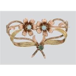 20. sz. közepe, 14 k arany, virág forma, 1 db smaragd, 2 db opál díszítéssel, 2,6 g