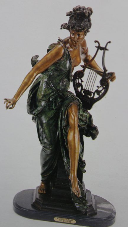 "Melodie" Bronze Sculpture - After Belleuse - Beautiful Color Patina/Museum Brown Finish - Mounted On A Fine Italian Marble Base - Beautifully Detailed - Signed - Mint Condition - 36"H X 14"W - Lost Wax Cast Bronze