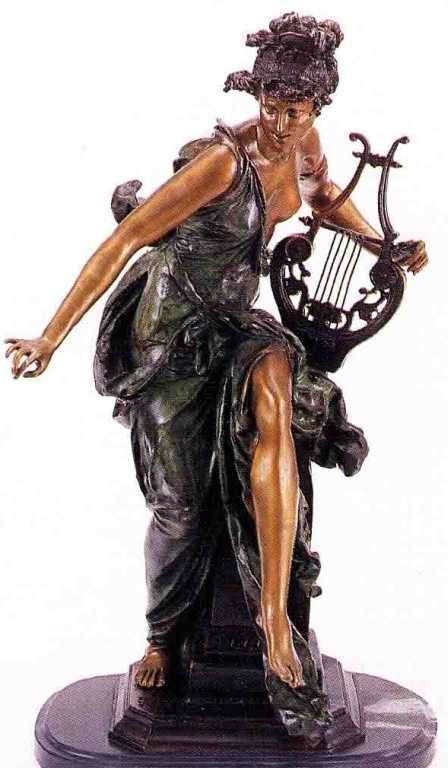 "Melodie" Bronze Sculpture - After Belleuse - Beautiful Color Patina/Museum Brown Finish - Mounted On A Fine Italian Marble Base - Beautifully Detailed - Signed - Mint Condition - 36"H X 14"W - Lost Wax Cast Bronze