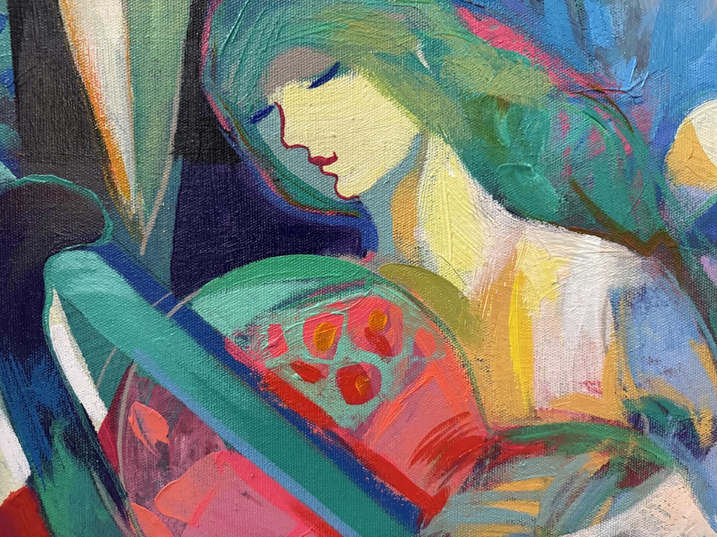 Fantastic original acrylic on 28X60" canvas. Hand signed by pALACIOS. This artwork comes framed and ready to hang