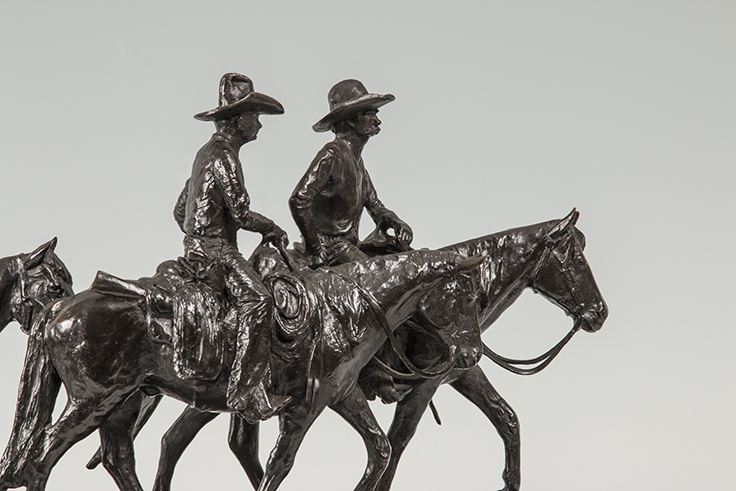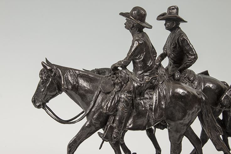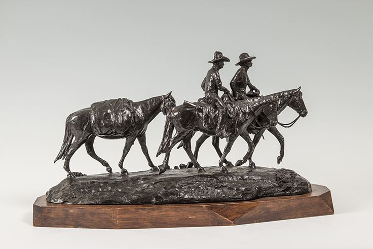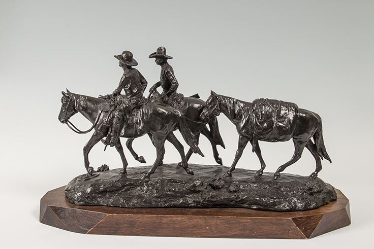 Melvin Warren (CA). Texas Rangers on Patrol. 11 ¾" x 22" x 7 ½" bronze. Inscribed: 122/150. Texas Rangers on Patrol, © Melvin C. Warren, CA. 1972. Amel Foundry.