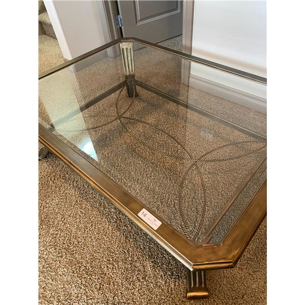 Glass & Brass Coffee Table 47L x 34W x 16H14 - Glass & Brass Coffee Table 47L x 34W x 16H