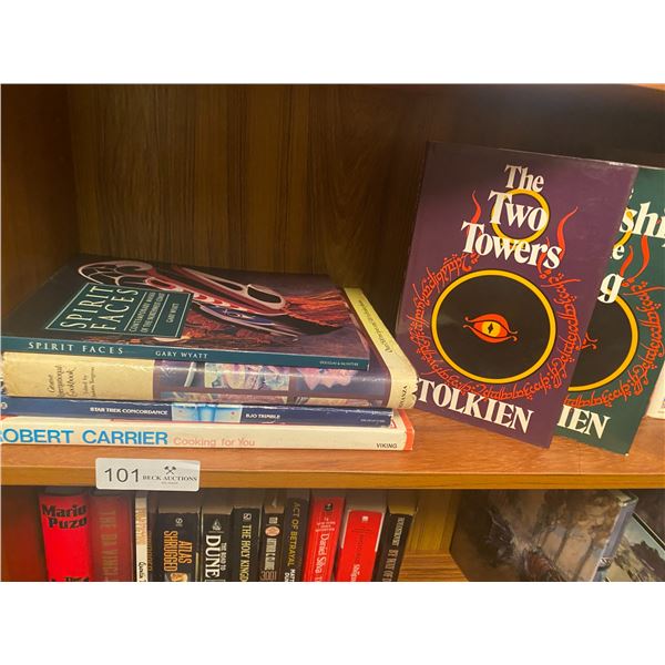 Includes: 2 Cookbooks, A photo book of Native-American masks, Lord of the Rings 2nd Edition, and Star Trek Concordance