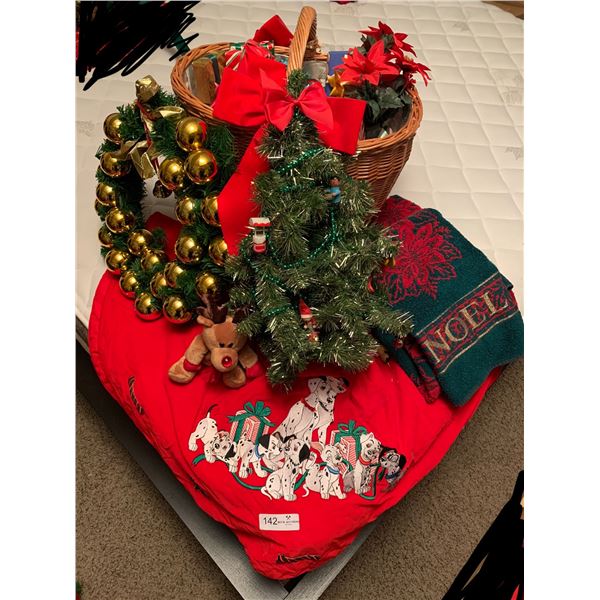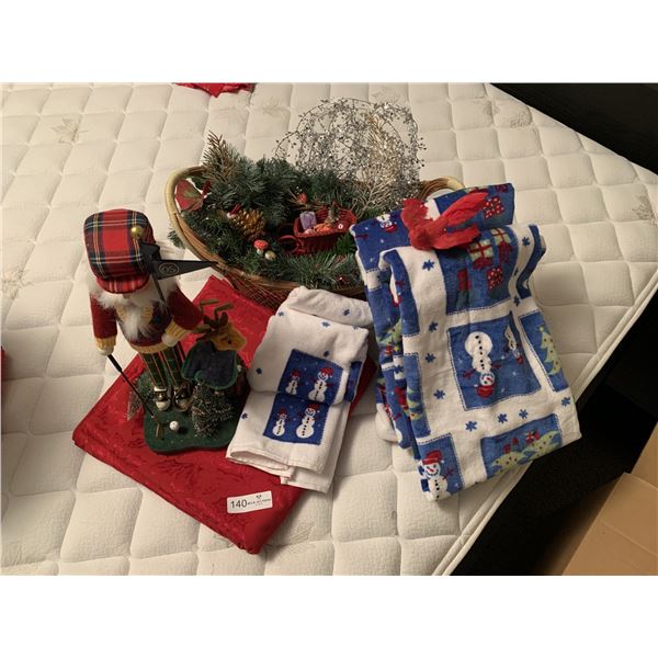 140 - Assorted Christmas Decorations - Nutcracker, Basket, Towels, Tablecloth, & more!Beck Auctions Inc.