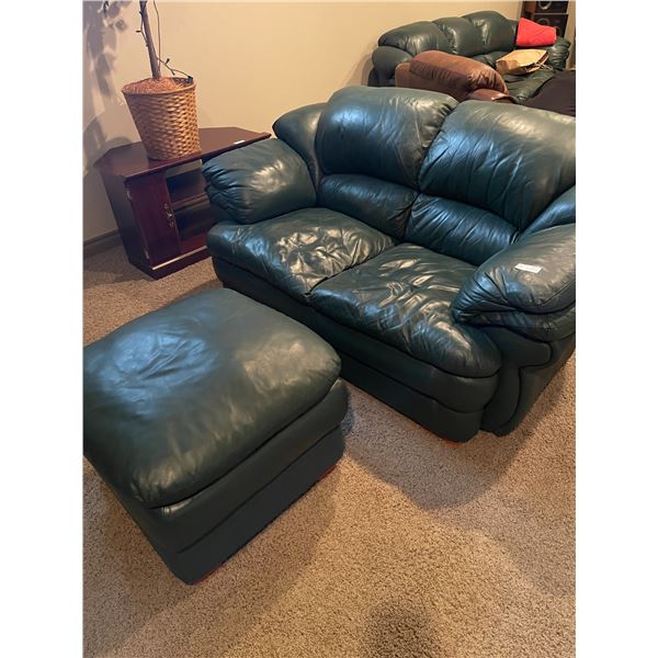 DeCoro Green Leather Love Seat & Ottoman   64Lx42Wx32H21 - DeCoro Green Leather Love Seat & Ottoman 64Lx42Wx32H