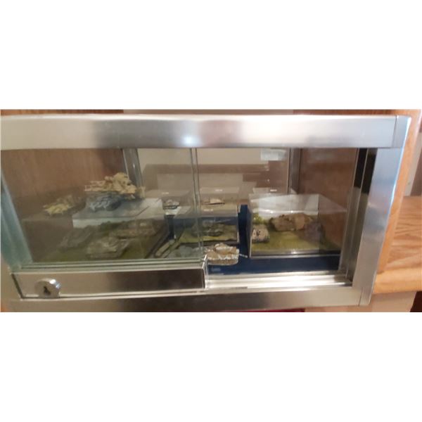 Well Crafted Locking Display Case With Keys Filled with Collectible Tank Miniatures