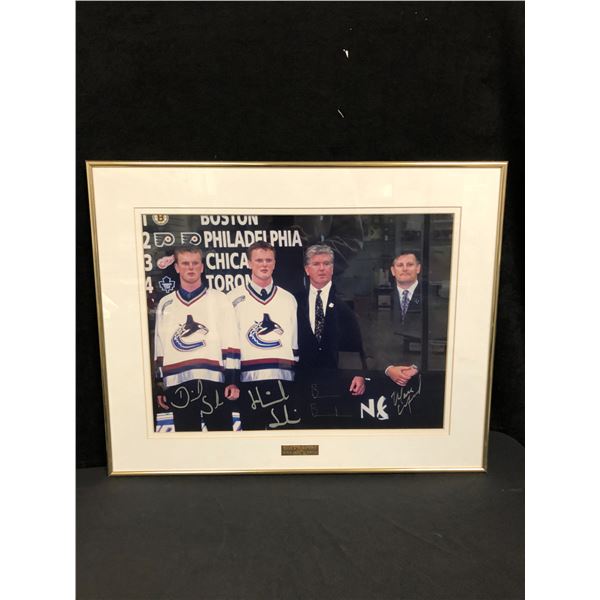 HENRIK AND DANIEL SEDIN, B. BURKE AND M. CRAWFORD SIGNED FRAMED PHOTO302 - HENRIK AND DANIEL SEDIN, B. BURKE AND M. CRAWFORD SIGNED FRAMED PHOTO