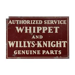 Circa 1940. 2-Sided. Heavy lithographed steel hanging sign. 16.5” x 23.75”. Scattered surface loss and oxidization. $600-800.