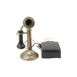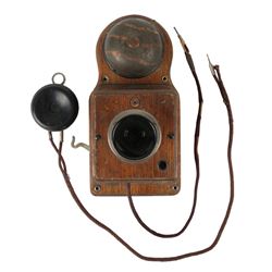Circa 1910. Quarter-sawn oak case. Original finish. Receiver incised "Canadian Independent Tel. Co, Limited, Toronto, Ontario. 25.5" x 12&...