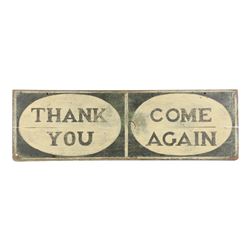 American. Circa 1950. 43" x 16" x 2.5". One dime-sized loss, third "c" in text. Surface loss along upper edge with faint ox...