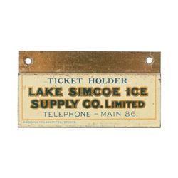 French Canadian. Circa 1930. Tin-framed cardboard. 40" x 14.5". Fading with minor closed perforations. Shallow bends. $200-300.