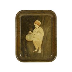 Circa 1950. Reverse-painted glass panel. The surface is "baked on", much like a gasoline globe lense. Intended to be fitted in a box and b...