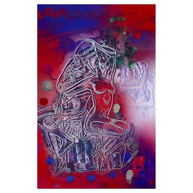 "Memories Of The Present" is an original mixed media painting on paper by Mark Kostabi. The piece is hand signed and accompanied by a Certificate of Authenticity. Measures approximately 40.5 x 26".