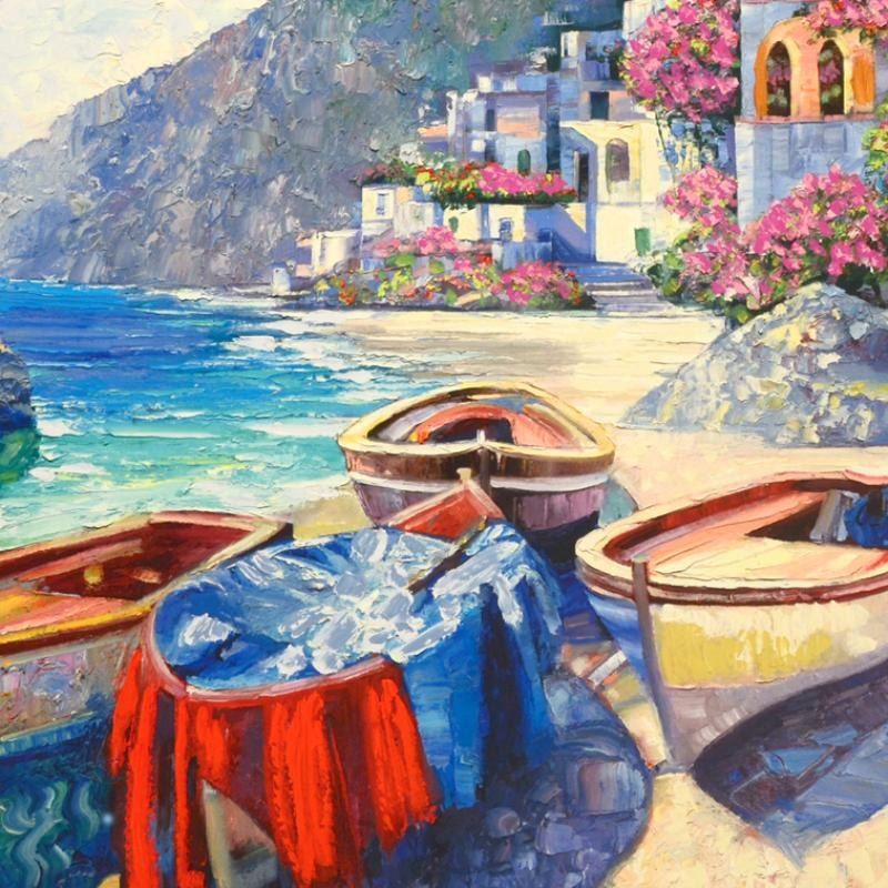 With bright colors and lush textures, Howard Behrens' artwork adds a tropical and exotic feel to any art collection. "Memories of Capri" is a limited edition hand embellished giclee on canvas. Numbered and hand signed by the artist. Includes Certificate of Authenticity! Measures approx. 12" x 9"(image). Retail Price $900.00. PRICE INCUDES FREE SHIPPING IN THE U.S. - SHIPPING WILL BE ADDED TO YOUR INVOICE FOR ALL BUYERS OUTSIDE OF THE U.S.