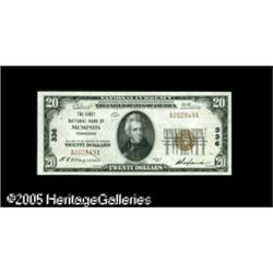 <B>Memphis, TN</B></I> - $20 1929 Ty. 1 <B>The First NB </B></I> Ch. # 336<BR>A stunningly attractive <B>Gem Crisp Uncirculated</B></I> note with boardwalk margins and deeply virginal embossing. For those who favor certified currency, we'd venture that this would be a candidate for a number higher than 65.<BR><I>Lot 1945 in the McIntire Numismatic Auctions 1983 Greater Houston Money Show Auction.</B></I> Lot:16981