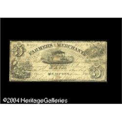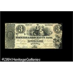 Memphis, TN- Farmers & Merchants Bank $1, $3, $5 G2, G4 <B>Memphis, TN- Farmers & Merchants Bank</B></I> $1, $3, $5 G2, G48a, G8 Garland 612, 629, 635<BR>A trio of better Memphis notes, with all three pieces being listed as R-13 in the Garland reference. The $1 grades a nice <B>Very Good+,</B></I> the $3 is <B>Fine</B></I> but has considerable damage to its right end, and the $5 grades <B>Very Good.</B></I> 3 notes <BR><BR><B>Important notice:</B> Heritage usually auctions material at the rate of 200-250 lots per hour. On some occasions eBay Live bid software or the Internet may not be able to keep up with the pace of the auction. We recommend placing a realistic absentee bid now as insurance to avoid disappointment. Occasionally the auctioneer may eliminate or reject an eBay Live bid, and the auctioneer may also reopen a lot after the close of the eBay live bidding (usually because we missed an audience bid), and may reject your bid even if it shows you as the winning bidder. By bidding via eBay Live, you agree that Heritage may award the lot to another bidder at its sole discretion under the circumstances described above or any other reasonable circumstances. Since eBay bids are not shown to us until we open the lot on the floor, we treat those bids just like floor bids. In most cases the floor responds before the eBay bid is presented to us, due to Internet lag time, so for consistency we have made it a policy that floor bids are always considered first over tie eBay live bids. Also please note that all Heritage lots purchased through eBay Live carry a 20% Buyer's Premium. Please make sure you read the Terms and Conditions before you bid. This lot is being auctioned in conjunction with a live floor auction by Heritage Galleries & Auctioneers. All final auction and invoice information will be supplied by Heritage Galleries & Auctioneers, and all other information should be considered preliminary. Lot:15897