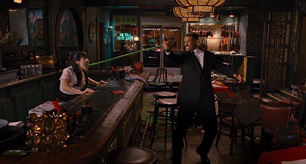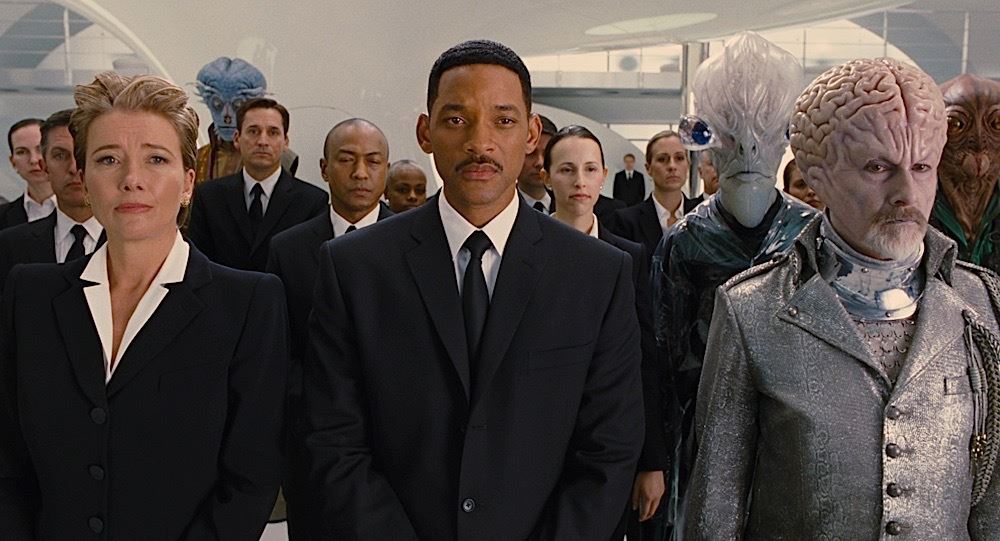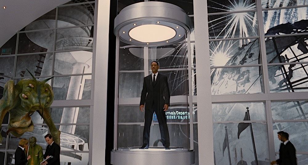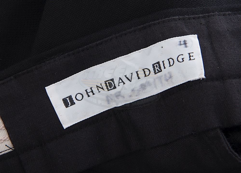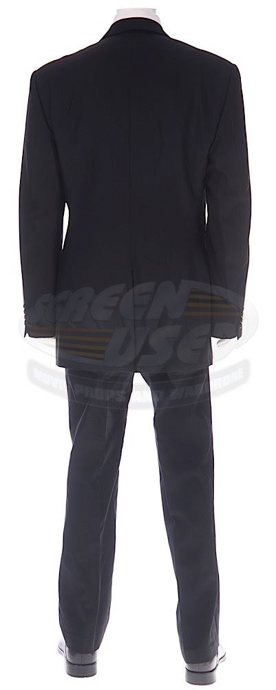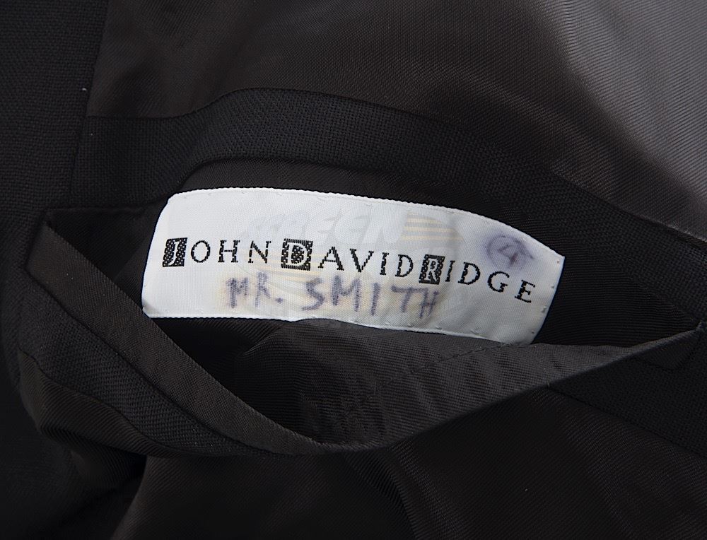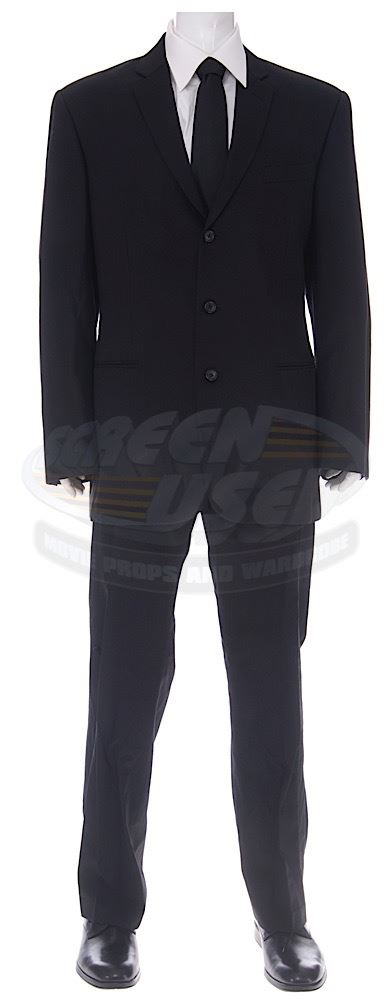 (Columbia Pictures, 2012) This iconic suit was custom-made by the production for use by Will Smith as "Agent Jay". The costume consists of a matching black suit jacket and pants, white long sleeve button down dress shirt, black tie, black shoes and black leather belt. The jacket and pants were custom-made by John David Ridge and have attached labels with "Mr. Smith" written in ink. The shirt was made for Mr. Smith by Anto of Beverly Hills and has a label that reads W.S. March 2011. The pants have a 2" tear on the side of the right leg.