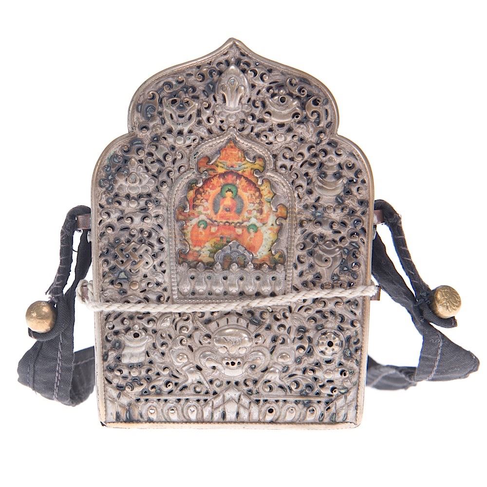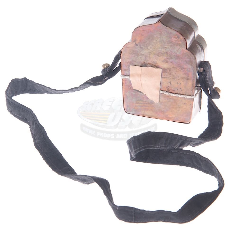 (Columbia Pictures, 2012) This prop box was custom-made by the production for use by Michael Stuhlbarg as "Griffin". The box is made of copper with ornate metal cover and inlayed image and sealed with a small section of rope. A cloth strap is attached to the sides. Measures 4.25" x 3" x 1.75".