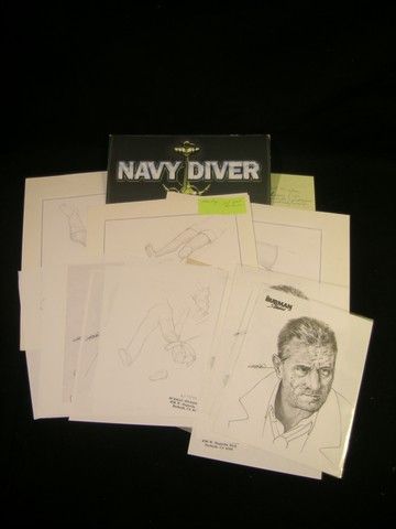 A lot of (18) B&W sketches of make-up ideas for actor Robert De Niro for his role in the 2000 bio-drama 'Men of Honor.' The lot showcases different 'injury' looks for Mr. De Niro, sketches of a prosthetic leg, and other body part studies. Also comes with a cardboard placard of 'Navy Diver,' the original title for the film. Sketches are done on different sized wax and white paper. Lot comes directly from the Burman Studios. (measures approx. 11 1/4" x 15")