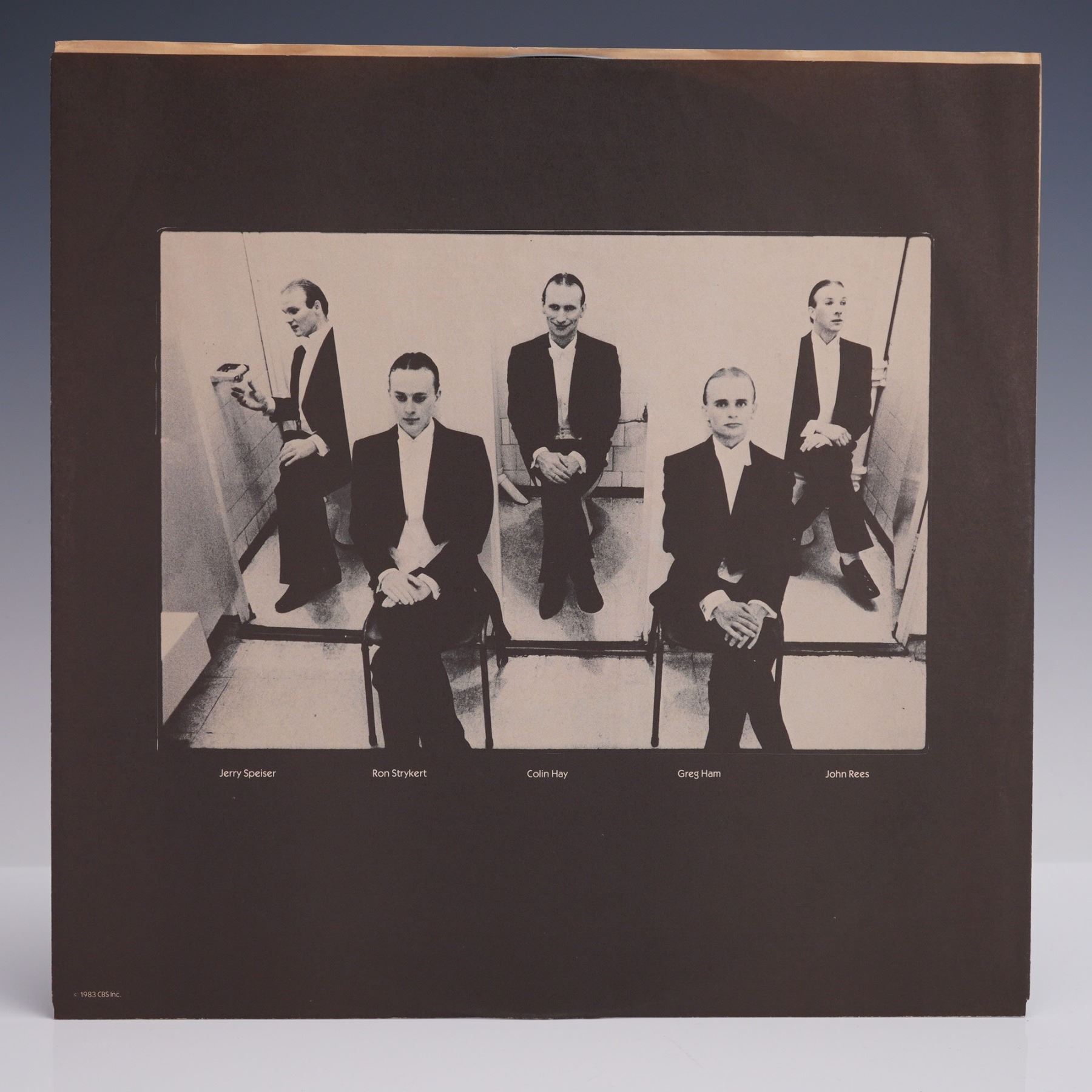 Men at Work - Cargo vinyl LP album, released in 1983 on Columbia Records (QC 38660). This second studio album from the Australian rock band includes standout tracks such as Overkill, It's a Mistake, and Dr. Heckyll & Mr. Jive, blending catchy pop hooks with subtle political and emotional themes. Produced by Peter McIan, the album helped cement the band's international success following their breakthrough debut. The front cover features vibrant, cartoon-style artwork depicting a tropical island scene with a parachuting crate and scattered mechanical debris, while the back shows a serene sunset vista through a pair of binoculars. Includes the original inner sleeve with band portrait. Vinyl bears the red Columbia label and appears clean; jacket shows minor edge and surface wear from age.