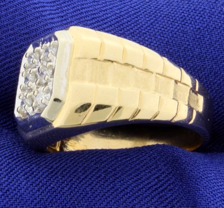 In 14K yellow & white gold, it contains six .08ct round high quality diamonds - VS clarity/G color . Size 11        9.3g