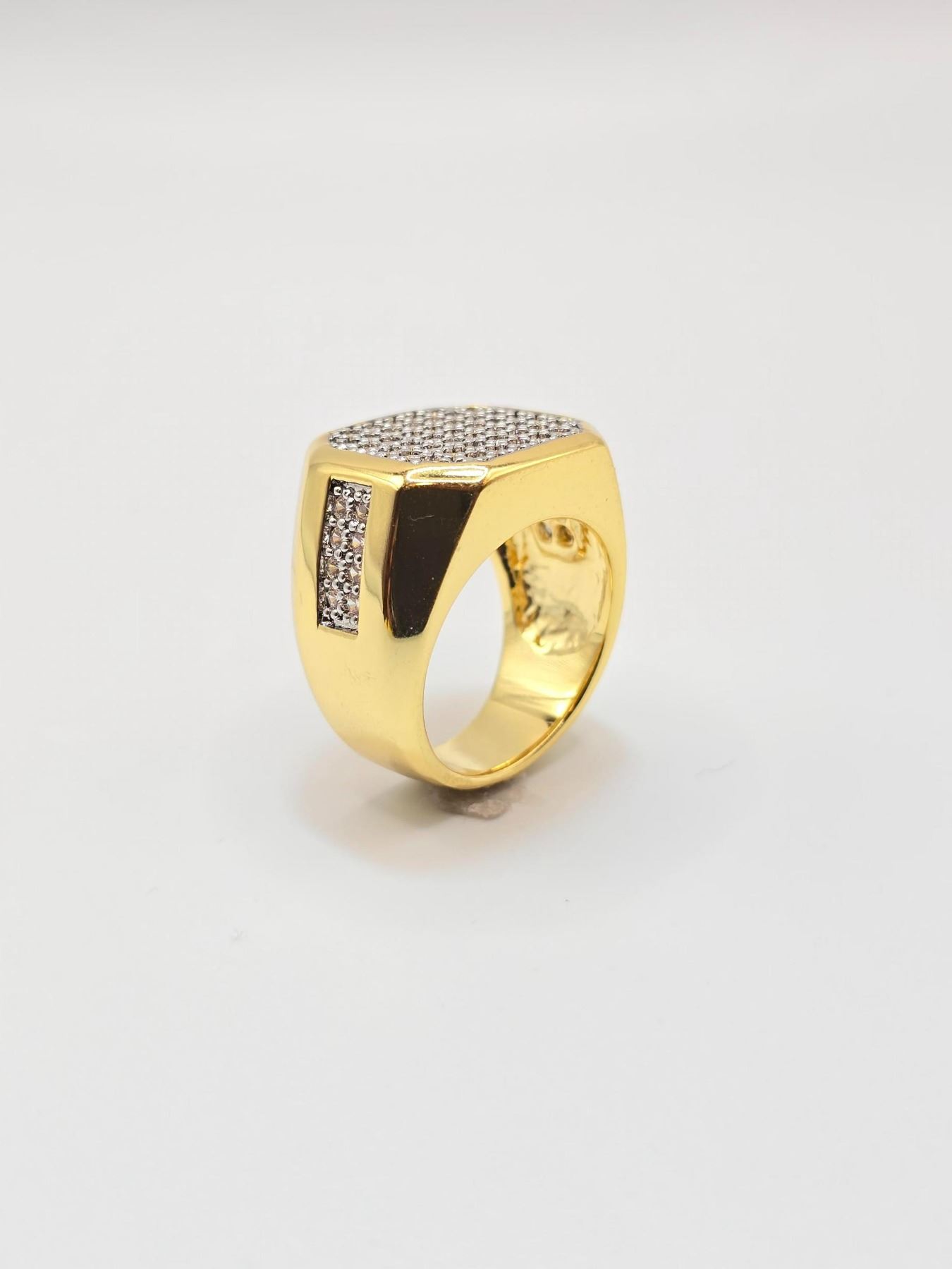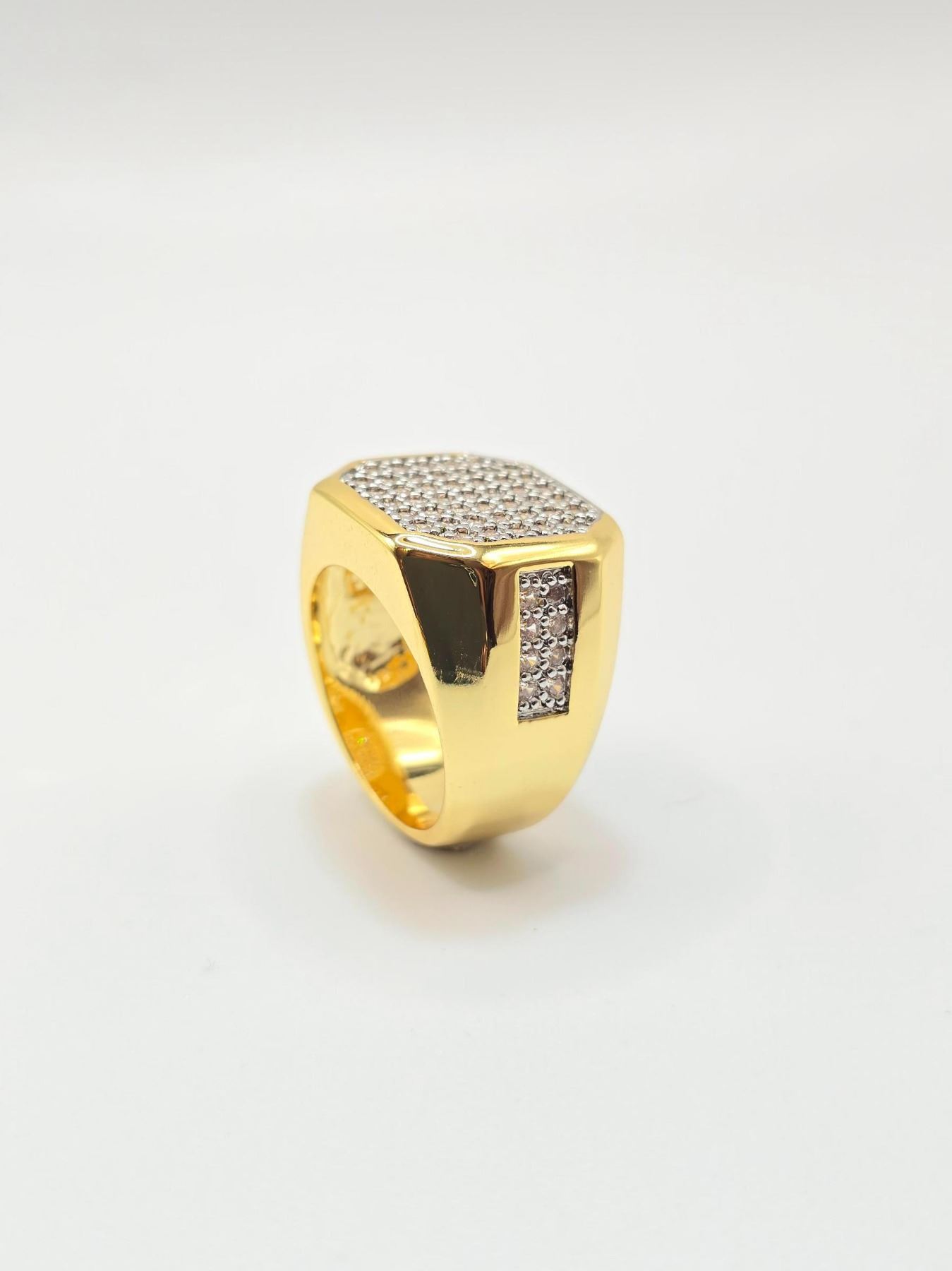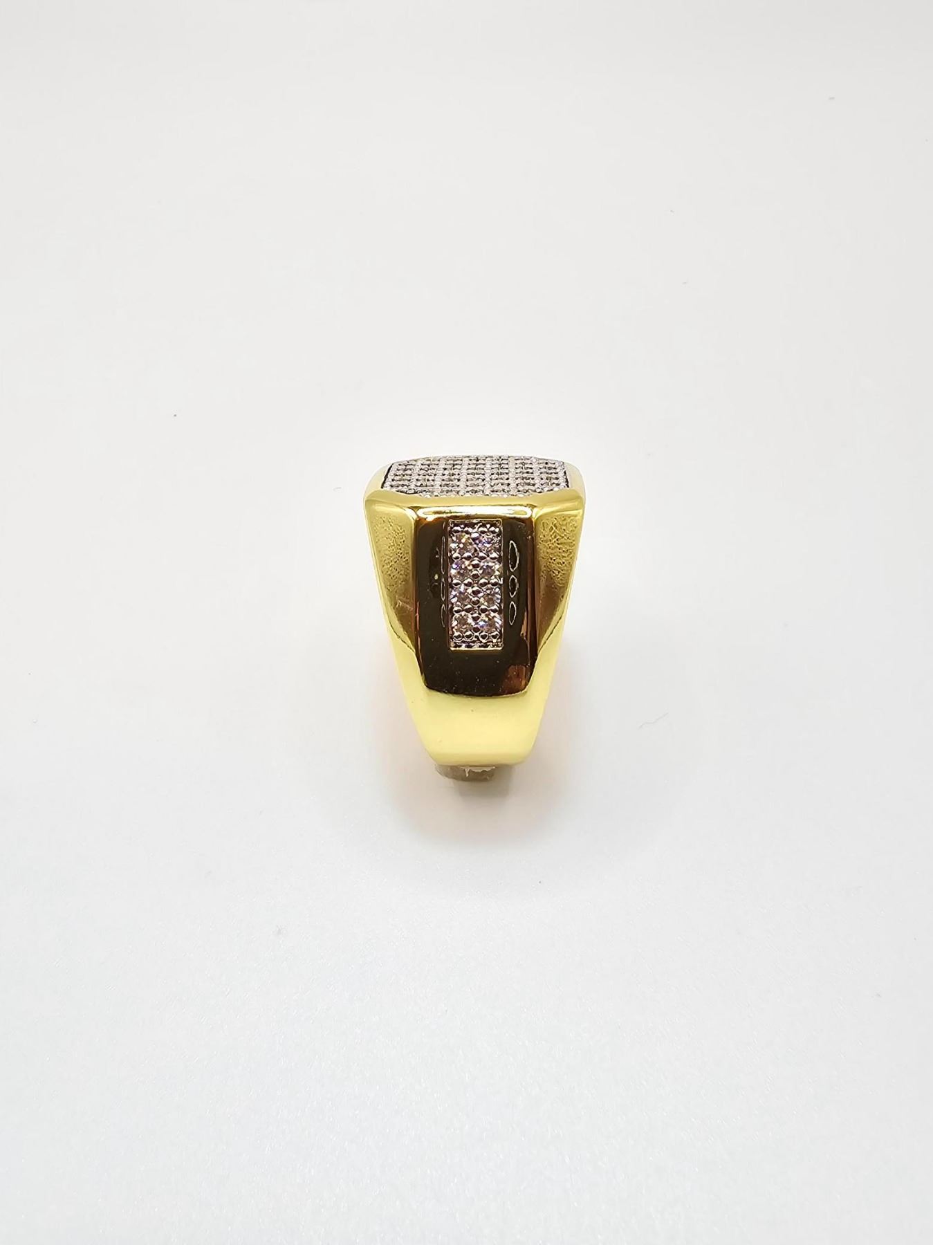 One Men's Handsome 14 Kt 6.25 Cttw Lab Simulated Diamond Ring. These Sparkling Gemstones are all VVs1 Near Flawless and Mounted in 14 Kt. Tri-Layered Yellow Gold, This ring is well made with strong detail. Hard To Find A-1 Quality Big Man's Size 10.25. The Total Gram Wt is A Stealth 13.9 Total Grams. This Ring Is Incredible. Don't Miss It!