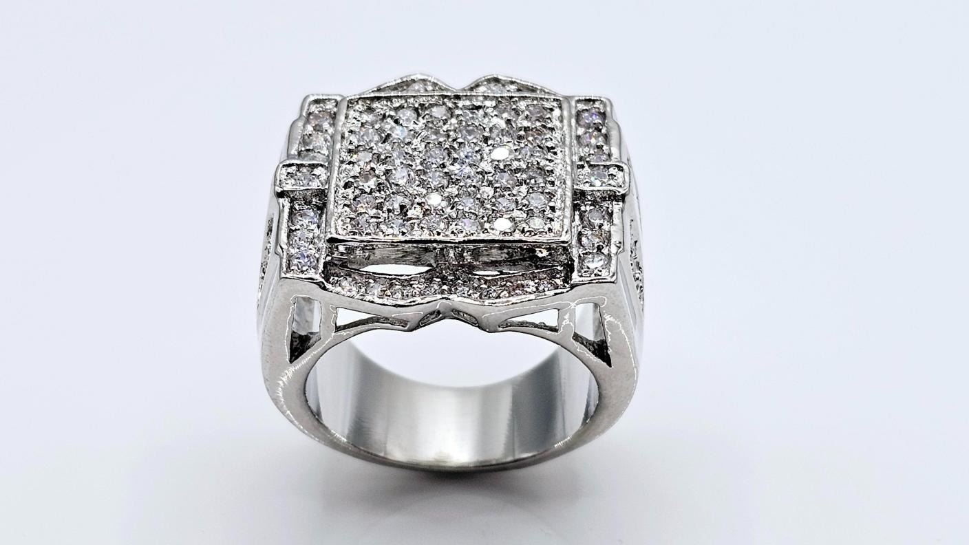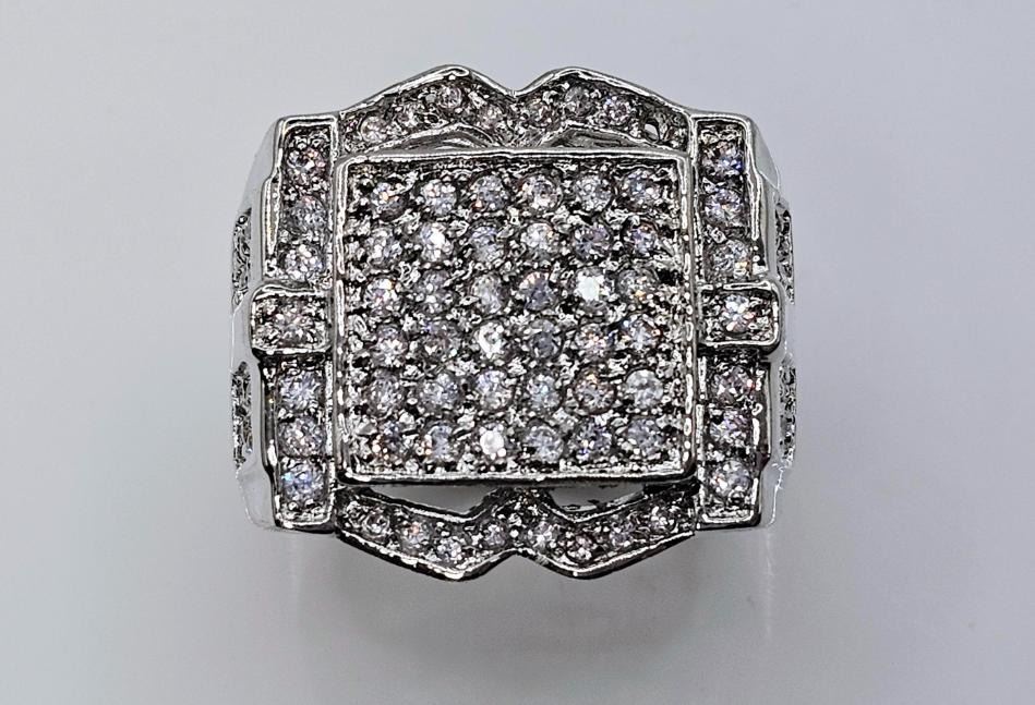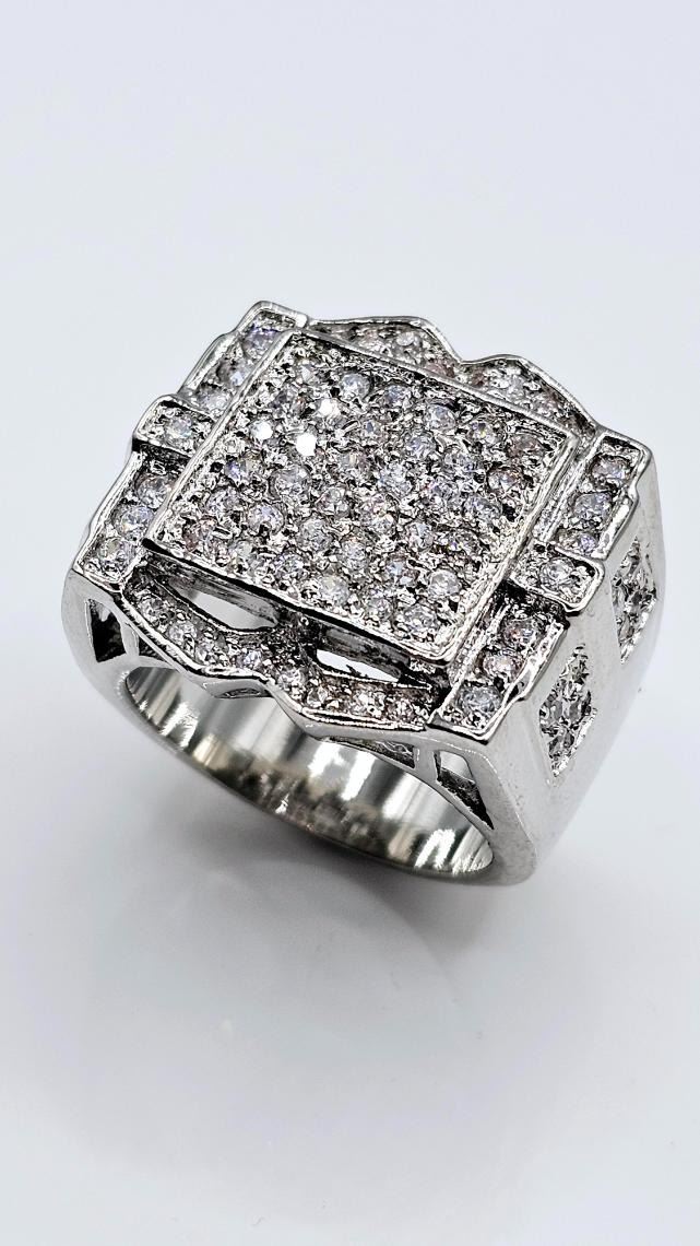 Men's 14 Kt White Gold Plate 5.75 Cttw. Lab Simulated Diamond Ring.