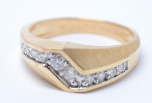 Men's 14 kt Diamond Ring. Brushed gold and size 9 3/4. Approx. 1.25dtw.