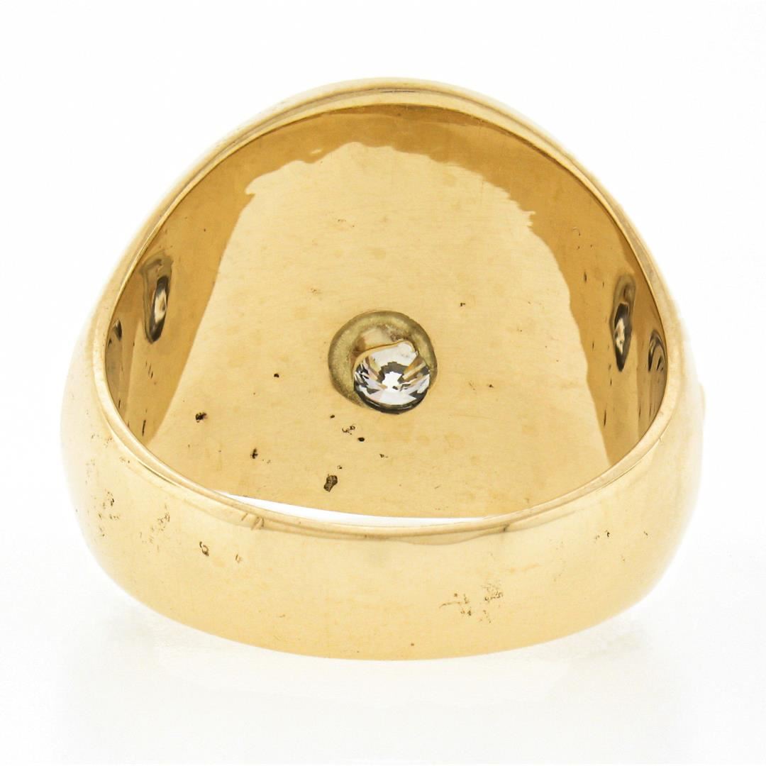 A solid 14k yellow gold oval signet ring, with 1 round brilliant cut natural diamond (G - SI1 - 0.17ct). The ring is size 11.5, weighs a total of 14.82 grams, and measures 19.20mm wide.